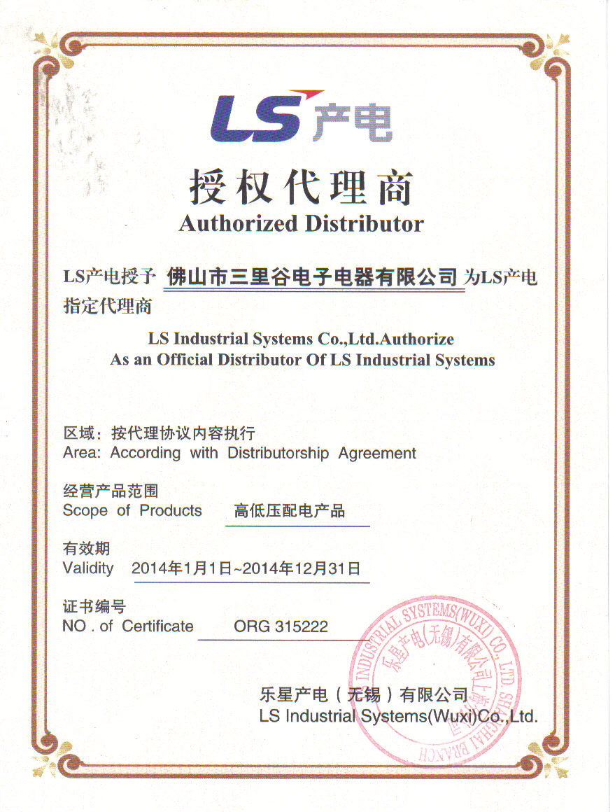佛山市三里谷電子電器有限公司成立于2004年,是韓國LS產(chǎn)電華南地區(qū)核心代理商;同時(shí)專業(yè)代理、經(jīng)銷日本富士、臺(tái)灣士林、法國海格電氣、上海康比利儀表、貴州長征、深圳泰永科技、西安森源等國內(nèi)外知名品牌高、低壓元件及工業(yè)電氣的公司。以專業(yè)的技術(shù)支持,優(yōu)質(zhì)的售后服務(wù),承接各項(xiàng)配電及自動(dòng)化設(shè)備改造工程。